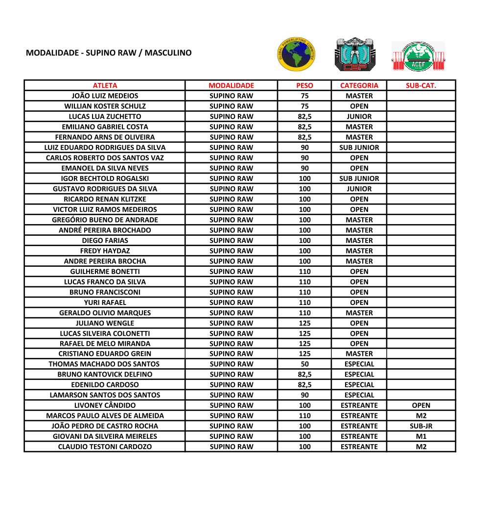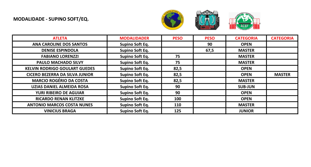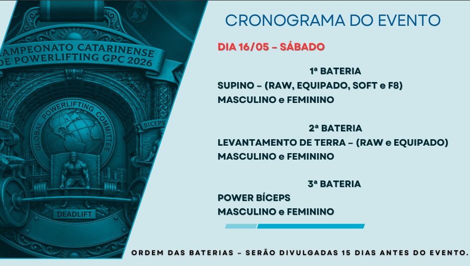 CATARINENSE - Supino, Terra, Soft Equipado, Biceps Curl