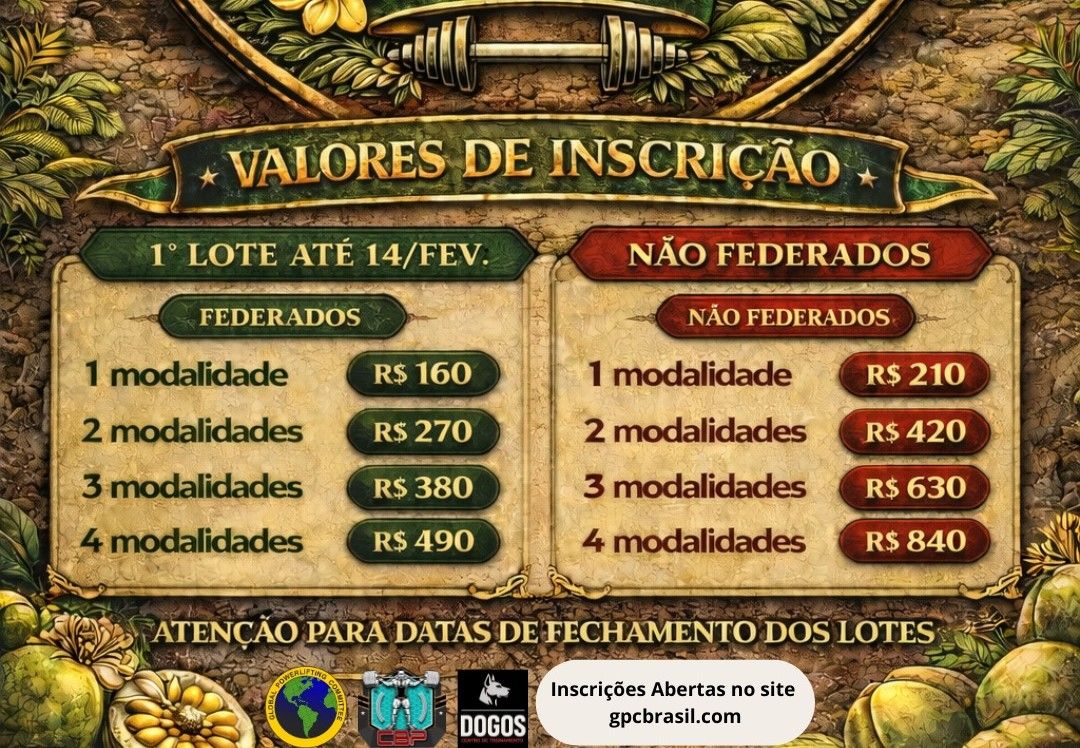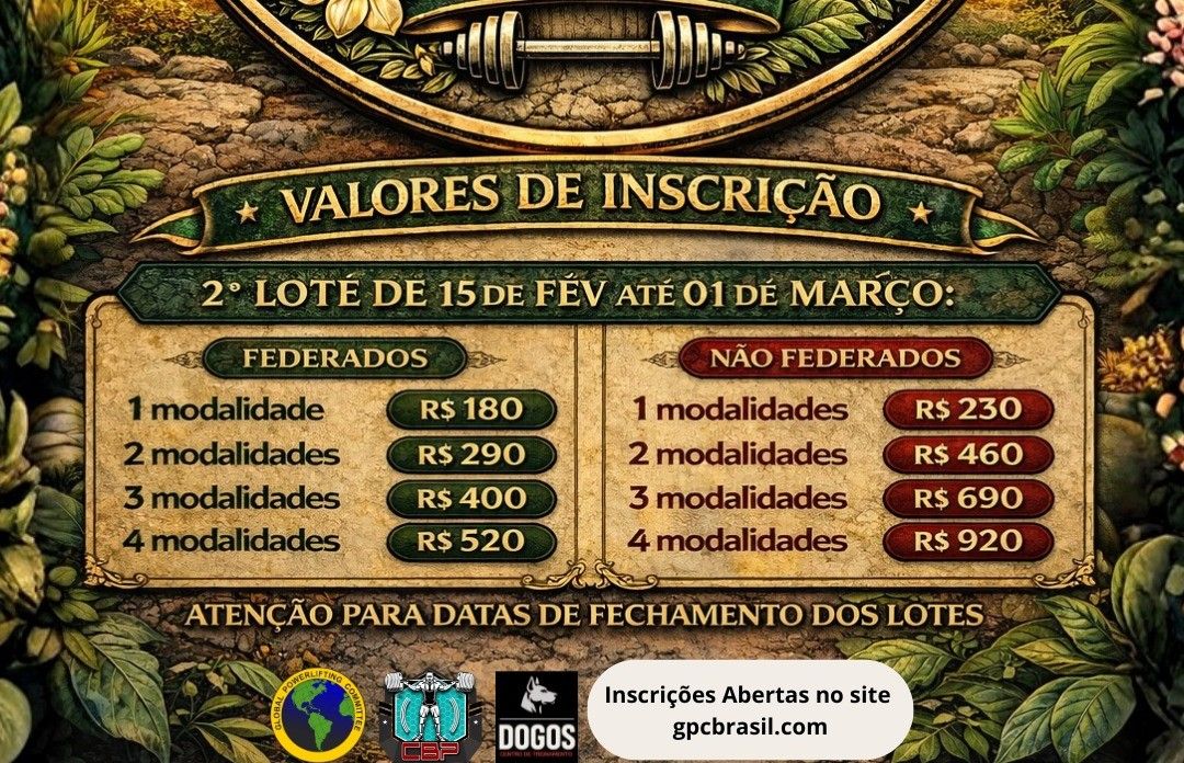 Campeonato de Powerlifting/ Agachamento/ Supino e Levantamento Terra, somente Raw todas as modalidades descritas.